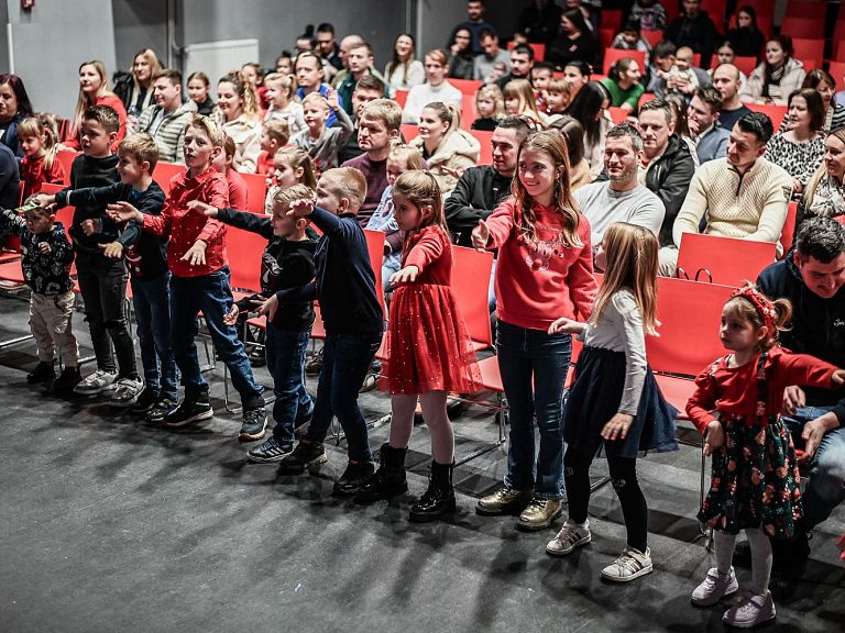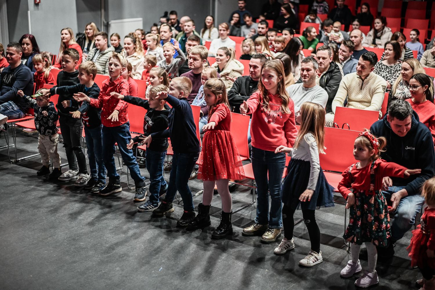 Otroci so si ogledali predstavo »Skrivni recept za srečo« s Škratko Katko, s katero so zaplesali in pričarali darilo za Božička.